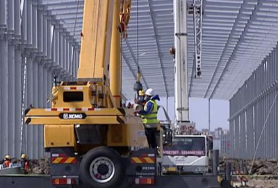 乐天堂·fun88钢构合作吊装40吨工程现场